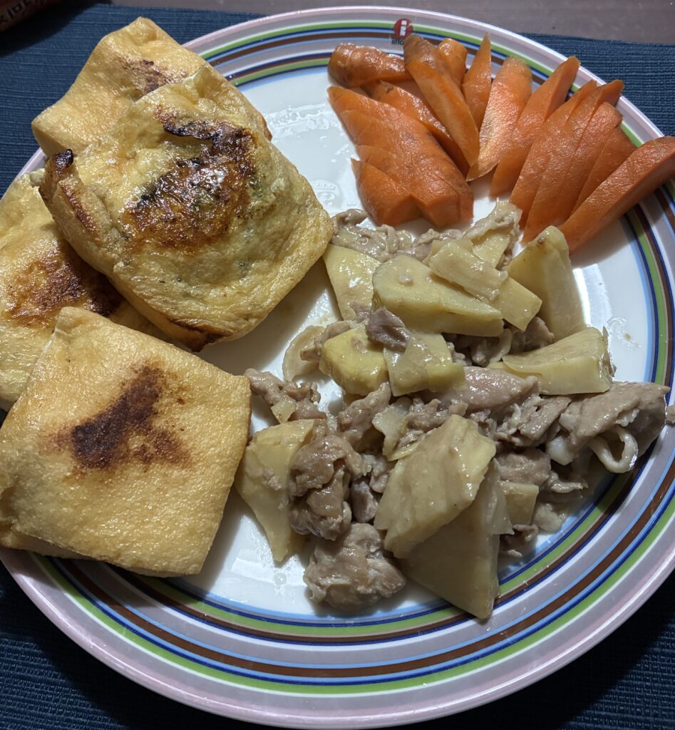 一人なので、一皿に盛り付けました。洗い物減らしたいし・・。